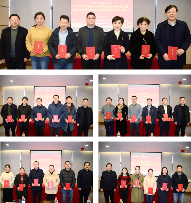 周恩超宣读南京中医药大学2023年度标志性项目获得者、南京中医药大学首批青年培育人才、南京中医药大学2023年度国家自然科学基金申报工作先进单位和先进个人的表彰名单,程海波、曹鹏、周恩超为受表彰单位和个人颁奖。这些丰硕的成果不仅提升了我校在中医药领域的学术地位,也为推动中医药现代化和国际化作出了积极贡献。