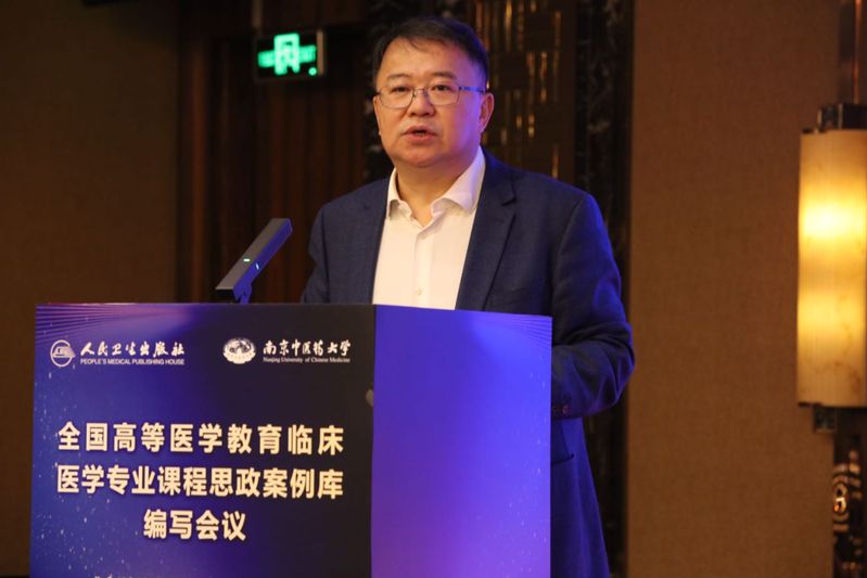 乔学斌在致辞中指出,南京中医药大学建校近70年来,始终坚持“发皇国医、勇开新路”的使命意识,致力做中国中医药高等教育教材建设的开拓者、努力做新时代课程思政育人的探索者。他表示,临床医学专业人才培养需要强化学生的道德品质和社会责任感,《全科医学概论》《中医学》作为专业核心课程,在发挥课程特色优势、促进临床医学课程思政建设上具有积极意义,编写组将全力以赴、高质量做好2门课程思政案例库的编写工作。乔学斌强调,在教材编写过程中,要做到“四个坚持”:一要坚持价值引领,把握正确的政治方向和价值导向,推进习近平新时代中国特色社会主义思想进教材、进课堂、进头脑;二要坚持发挥特色优势,挖掘2门课程的思政元素和育人资源,推动临床医学专业的课程思政建设;三要坚持质量第一,注重学术规范,遵守教材编写规则;四要坚持以学生为中心,注重案例库编写对课程思政教学改革的适应性、引领性,培养既具备专业素质又具备高尚医德医风的医学人才。
