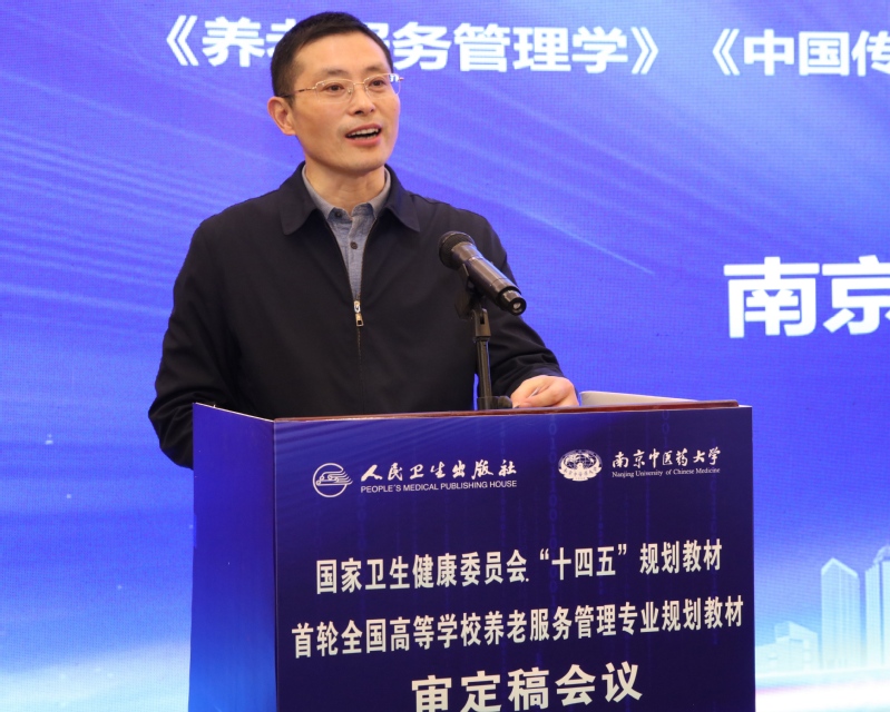 1月20日至22日,由人民卫生出版社主办、南京中医药大学承办的国家卫生健康委员会“十四五”规划教材首轮全国高等学校养老服务管理专业规划教材审定稿会议在南京召开。人民卫生出版社总编辑杜贤、中医药中心主任张科、专务李剑光,我校党委书记、首届全国高等学校养老服务管理专业规划教材评审委员会主任委员乔学斌,副校长赵霞,《养老服务管理学》《中国传统养老文化》《养老政策法规》《居家社区养老服务管理》4部教材主编、副主编、编委等50余人参加会议。开幕式由教务处处长陈志鹏主持。