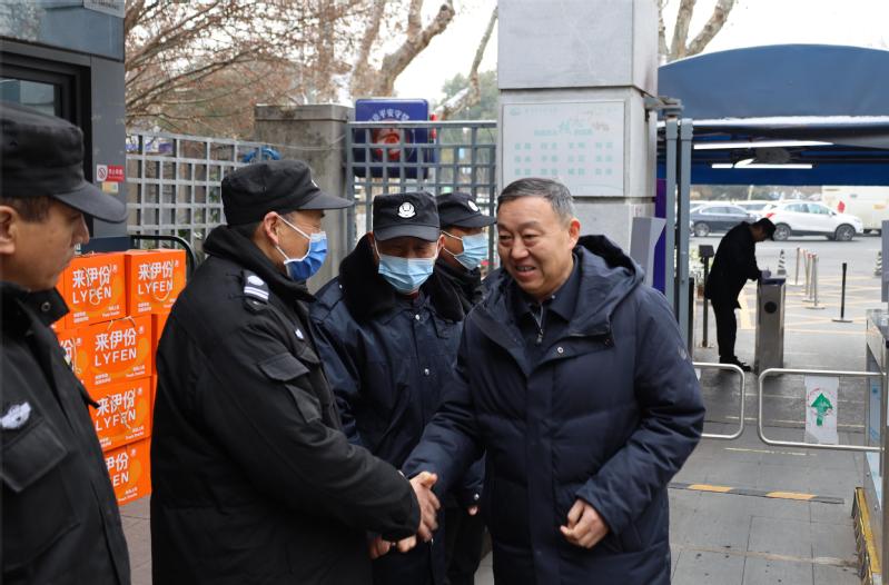 2月6日,郝达富一行走访慰问汉中门校区保卫门岗、收发室、科技园、汉管办、配电房、食堂、学生宿舍等单位值班人员,对大家在寒假和春节期间依然坚守岗位、切实保证学校正常运行表示慰问和感谢,并指出,汉中门校区作为学校重要组成部分,今年留校实习的学生众多,希望全体值班人员继续保持良好的工作作风,牢固树立安全责任意识,共同为汉中门校区留校师生的生活服务提供坚实保障。