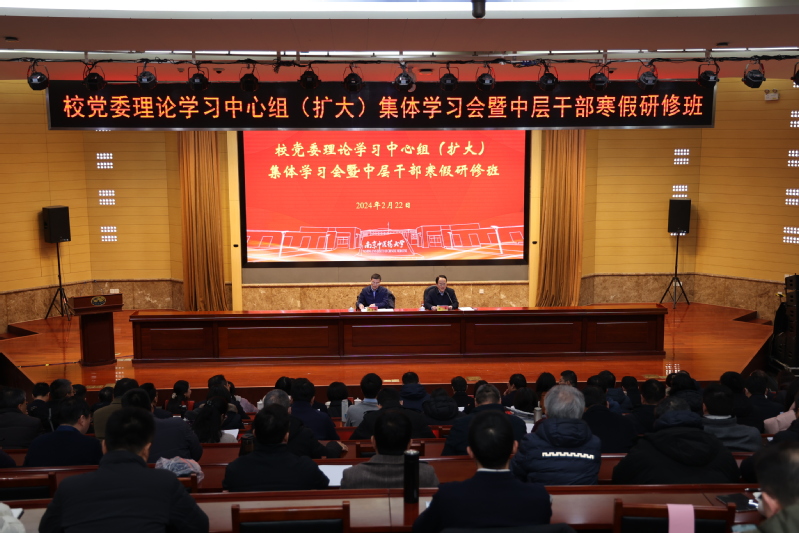 2月21日至22日,我校在仙林校区丰盛楼报告厅举办2024年校党委理论学习中心组(扩大)集体学习会暨中层干部寒假研修班,深入学习贯彻党的二十大精神,全面落实校第四次党代会决策部署,高质量推动国家“双一流”和江苏高水平大学建设,为2024年工作开好局、起好步“储电赋能”。校党委书记乔学斌出席相关学习活动并作总结讲话。校长程海波主持专题交流会,校党委副书记程革主持总结交流会。