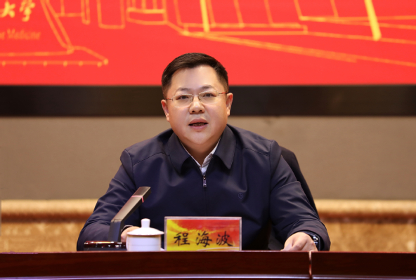 程海波以“担当善为、奋战大考,凝心聚力谱写一流中医药大学建设新篇章”为题就2024年学校重点工作进行部署和强调。他指出,2024年学校要以习近平新时代中国特色社会主义思想为指导,全面贯彻学校第四次党代会精神,锚定中国特色、中国风格、中国气派一流中医药大学目标,对标2025年双高“大考”要求,以推动高质量发展为主题,全面落实立德树人根本任务、全面推进学科内涵建设、全面提升人才师资队伍建设水平、全面提高服务国家战略与地方经济社会发展能力,为促进中医药高等教育高质量发展、教育强国建设与民族复兴伟业贡献南中医力量。
