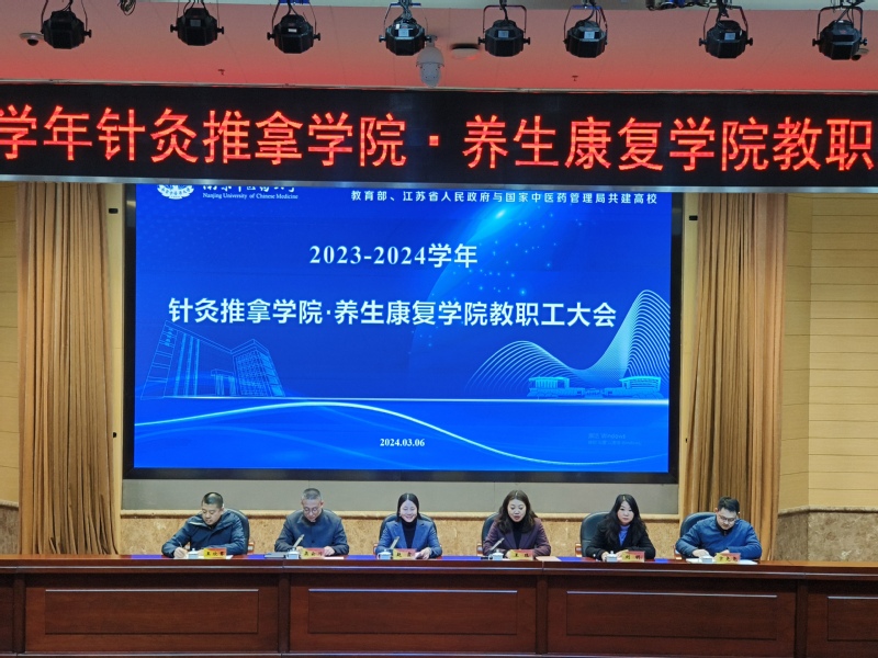 3月6日下午,针灸推拿学院·养生康复学院在丰盛楼报告厅召开2023-2024学年第二学期教职工大会,校党委常委、副校长赵霞出席会议,全体院领导,学科带头人,专业负责人,全体教职工参加会议。会议由学院党委书记王珏主持。