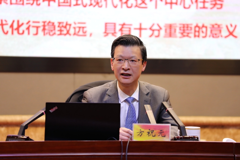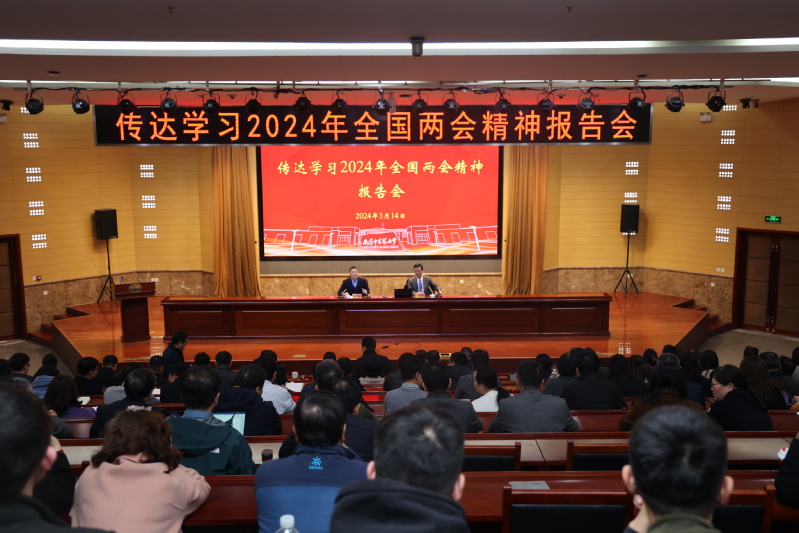 3月14日下午,我校召开传达学习2024年全国两会精神报告会,全国人大代表、我校党委常委、副校长、附属医院党委书记方祝元作专题报告,校党委书记乔学斌主持会议并讲话。