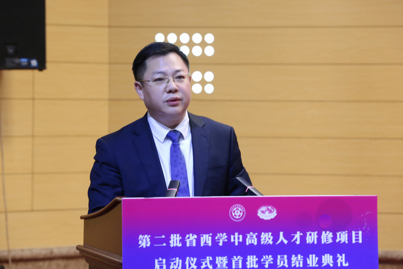 活动仪式上,与会领导共同为首批省西学中高级人才研修项目学员颁发结业证书,为第二批省西学中高级人才研修项目学员颁发校徽。