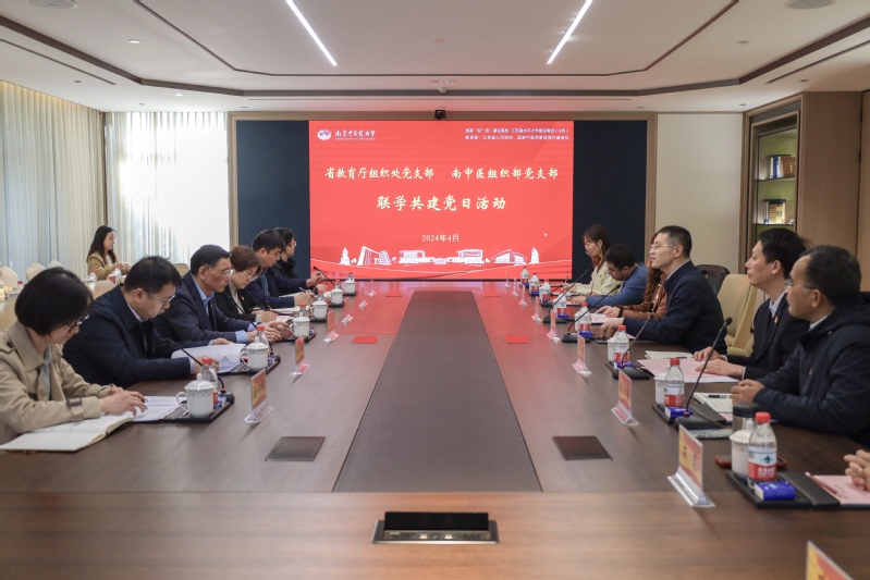 4月9日,省委教育工委副书记潘漫带领省教育厅组织处党支部来我校开展联学共建党日活动。南京中医药大学党委书记乔学斌和党委组织部全体党员参加联学共建活动。