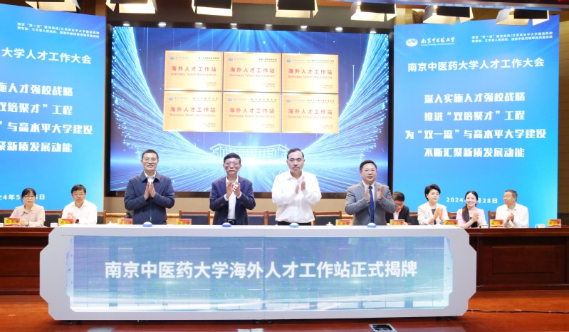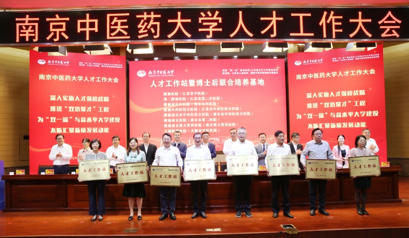 会上举行了南京中医药大学海外人才工作站揭牌仪式,以及人才工作站暨首批博士后联合培养基地授牌仪式。