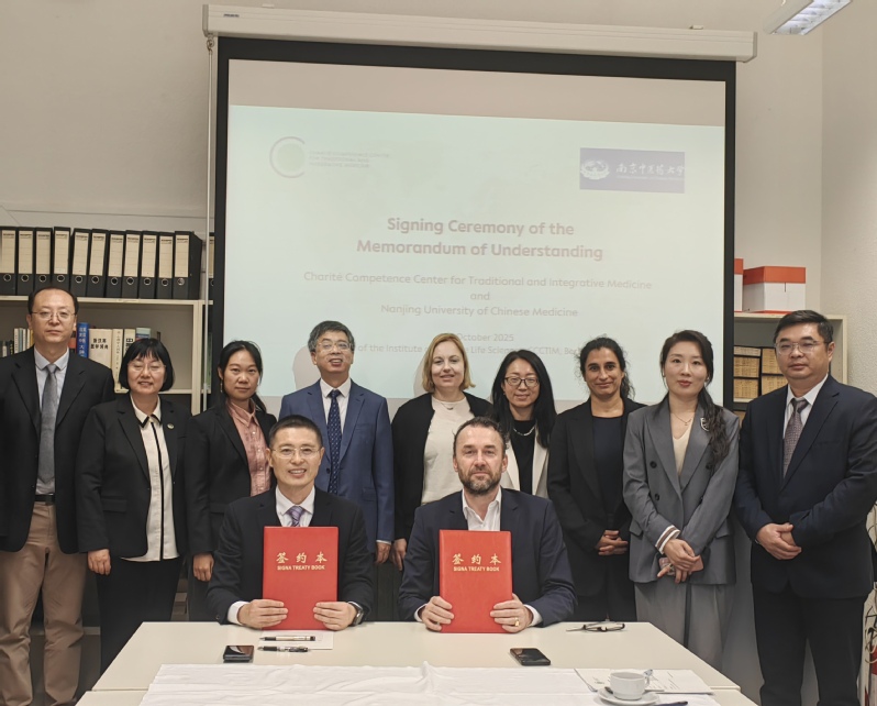 在德国柏林夏洛特医学院,乔学斌与该校传统医学中心负责人乔治·赛弗特举行会谈,并共同签署合作备忘录。双方一致同意以中医药为纽带,深化在医学培训、临床服务、科研创新与文化传播等领域的双边合作,共同促进民众健康,助力构建人类健康共同体。双方还就中医古籍文献翻译、中医适宜技术的临床应用与循证研究、经典方剂的有效性与安全性评价等议题展开深入交流。中国驻德国大使馆陈霖豪公参出席相关活动。