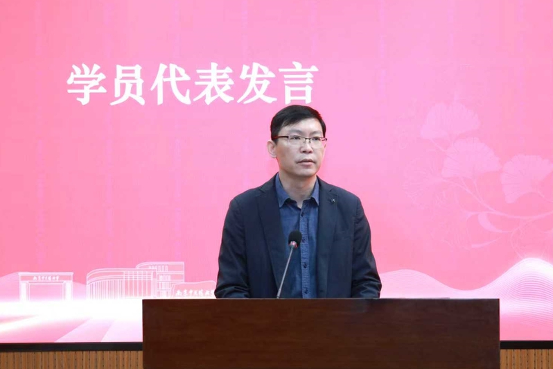 学员代表万凌峰在发言中对省中医药管理局和南中医提供的宝贵学习机会表示衷心感谢,并代表全体学员表态,要潜心学习,虚心求教,积极交流,在中医药沃土上深耕细作,为江苏中医药事业繁荣发展和护佑人民健康贡献智慧与力量。