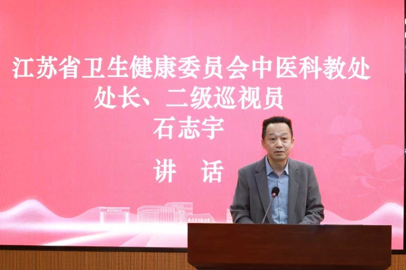 石志宇代表省中医药管理局发表讲话,阐述了本次培训的目的与意义,并对全体学员提出三点明确要求,一要以“空杯心态”潜心求学,真正将所学知识内化于行;二要以“问题导向”苦练内功,不断提升专业本领,将培训作为解决临床实际问题的“金钥匙”;三要以“传承创新之心”勇担使命,既要深悟经典,又要善于融合现代诊疗技术,探索中医临床新路径,努力成长为江苏中医临床的“领头雁”,为健康江苏和中医药强省建设贡献更大力量。
