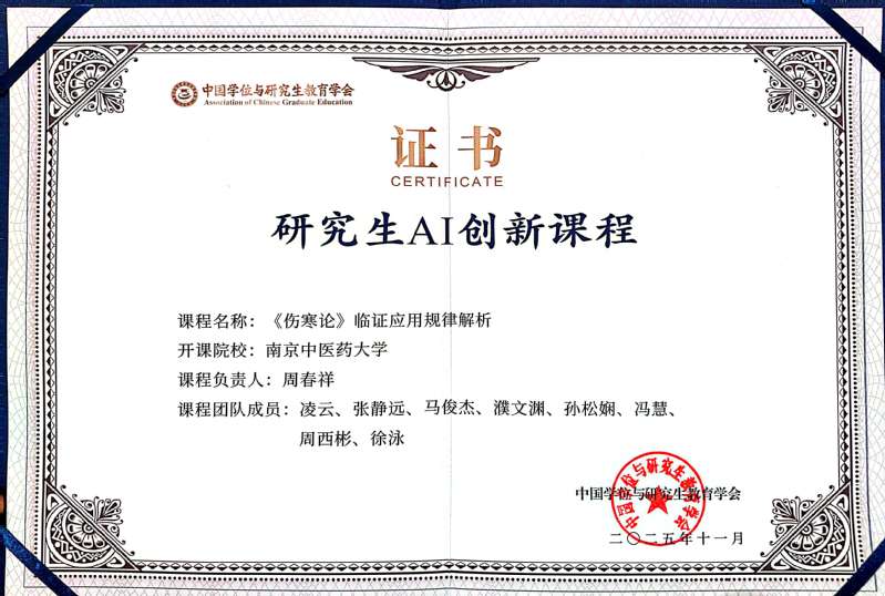 11月6日,2025研究生数智教育大会在杭州召开,会上中国学位与研究生教育学会公布了首批“研究生AI创新课程”入选名单。我校研究生课程《〈伤寒论〉临证应用解析》成功入选,在全国高校范围内,仅有21门课程获选。