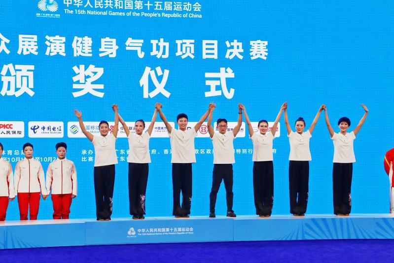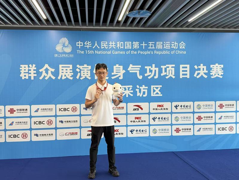 近日,中华人民共和国第十五届运动会群众展演健身气功项目决赛在广东清远举行。我校针灸推拿学院•养生康复学院徐勰老师执教的江苏省四队(盐城队),在马王堆导引术项目中摘得铜牌。这一成绩的取得,是学院针灸推拿与养生康复学科理论深度赋能训练实践的成果,更让传统功法成为高校“医体融合”的专业标识。