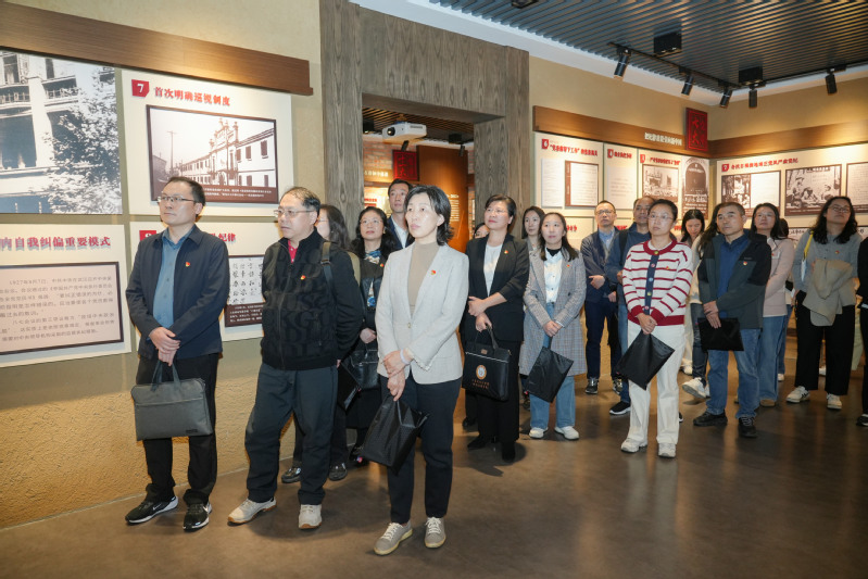 培训班组织学员前往江苏省首家以“纪律”为主题的教育阵地——栖霞区党的纪律建设教育馆开展现场教学。通过浏览珍贵史料、聆听音视频讲解、沉浸式观看警示案例,学员们系统回顾了中国共产党在不同历史时期推进纪律建设的理论探索与制度实践。