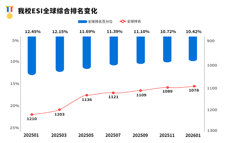 我校9个ESI全球前1%学科数据概况图(2026年1月)