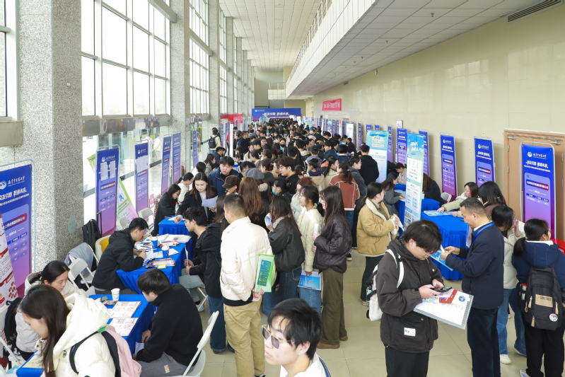 3月20日,我校2026届毕业生校友企业专场招聘会在仙林校区大学生活动中心北厅举行。本场招聘会由校长办公室(校友会秘书处)和学生工作部共同举办,以“校友引路,职通未来”为主题,邀请60家校友企业“回家”,为学弟学妹提供就业岗位类别214个,人才需求2600个。活动吸引千余名毕业生参加,投递简历五千余份,现场初步达成就业意向280人次。活动由江苏人社“就在江苏”现场直播,线上观看2.8万人次,累计曝光4.8万次。