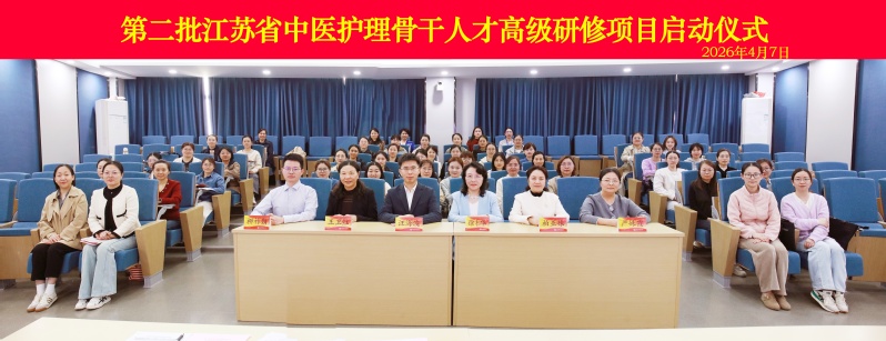 为加强中医护理高层次人才培养,推动江苏中医护理事业高质量传承创新发展,第二批江苏省中医护理骨干人才高级研修项目启动仪式于2026年4月7日在南京中医药大学护理学院举行。省卫生健康委中医科教处副处长汪海波,南京中医药大学原副校长、护理学科带头人徐桂华教授,护理学院院长柏亚妹教授出席启动仪式。仪式由江苏省卫生健康委中医科教处一级调研员王卫红主持。