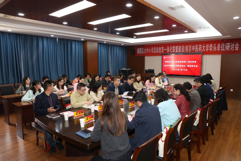 为全面落实立德树人根本任务,深入贯彻教育强国战略部署,推动大中小学思政教育一体化联盟工作落地,4月10日,南京中医药大学召开2026年栖霞区大中小学思政教育一体化联盟(南京中医药大学牵头单位)建设研讨会。我校党委常委、宣传部部长刘晓,南京市栖霞区教育局副局长陈婷婷,马克思主义学院·医学人文学院负责人、思政课教师代表,相关职能部门和学院负责人,以及南京市燕子矶中学、南京仙林外国语学校、南京市金陵中学仙林分校中学部等栖霞区7所中小学的负责人和教师代表等近50人出席会议。研讨会由马克思主义学院·医学人文学院院长肖安宝主持。