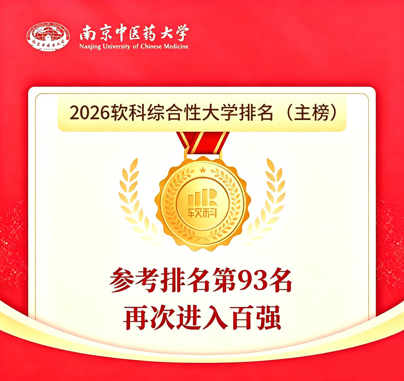 4月15日,高等教育专业评价机构软科正式揭晓“2026软科中国大学排名”。我校在中国中医药大学排名中蝉联第3,稳居第一方阵;在综合性大学排名(主榜)中参考排名位列第93位,较上一年度前进1位。这一成绩的取得,标志着我校办学实力与综合竞争力持续提升,高质量发展再获权威认可。