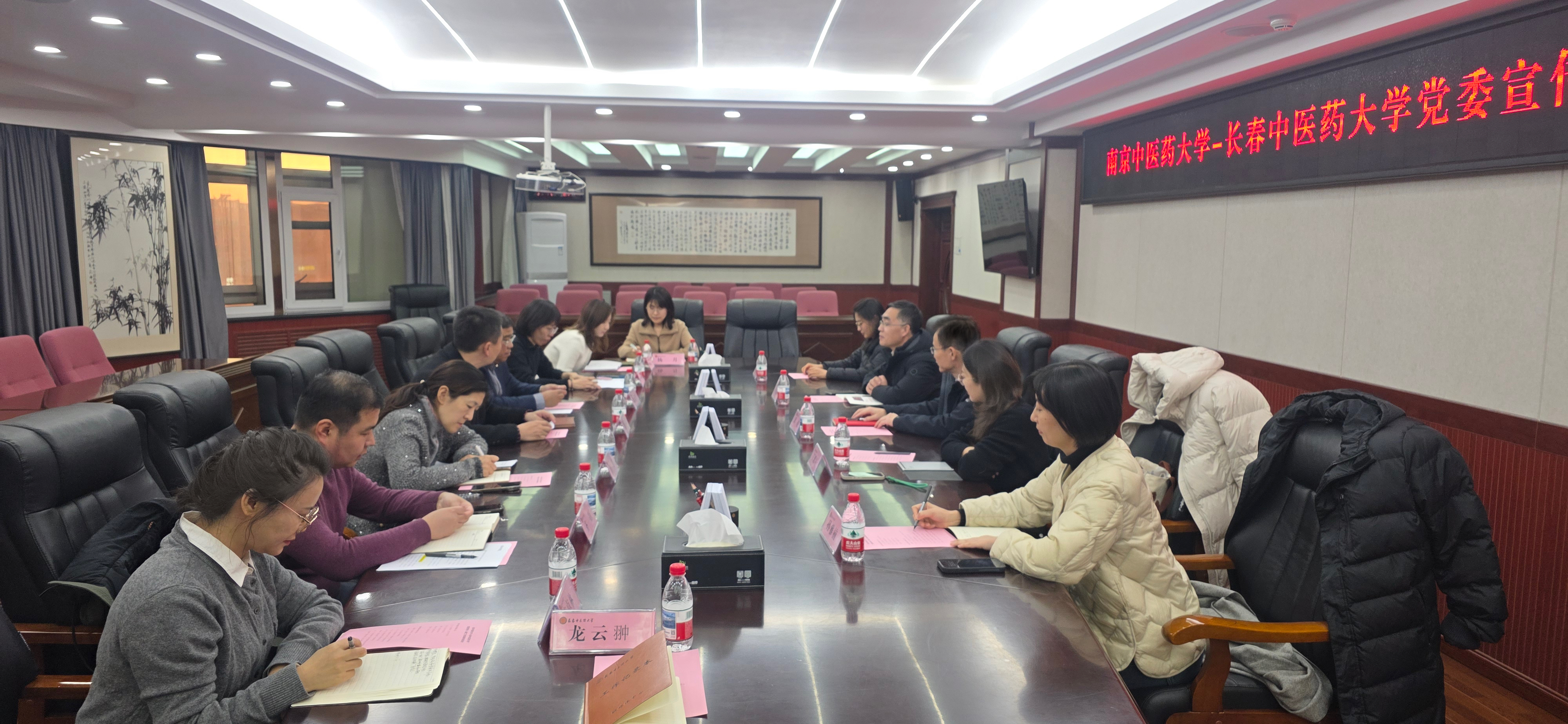 12月5日,我校党委常委刘晓率党委宣传部部分工作人员前往长春中医药大学,围绕学校“十五五”大学文化建设专项规划编制、思想政治工作等主题开展调研交流。长春中医药大学党委常委,党委宣传部、教师工作部部长瞿新明,马克思主义学院党总支书记徐永军,党委宣传部副部长于瑶,党委宣传部、党委教师工作部副部长刘纳等接待调研组一行。调研组现场观摩了2025年长春中医药大学中华优秀传统文化知识竞赛决赛。在随后举行的座谈会上,瞿新明系统介绍了长春中医药大学近年来深入推进新时代立德树人工程的总体布局与实施路径,重点分享了在高校思政精品项目培育、网络思政工作创新、大学文化建设规划编制、文明校园创建以及校园文化环境提升等方面的特色做法。他表示,长春中医药大学始终坚持将中医药文化精髓融入教育教学全过程,积极构建具有中医药特色的思想政治工作和校园文化体系。徐永军围绕“一个特长、三个助力”介绍了长中医思政项目建设情况,并详细介绍了杏林“青马工程”的特色亮点和学科助力、科研助力以及外部助力等组织实施经验。刘晓常委对长中医在相关领域取得的扎实成效表示高度赞赏。他指出,当前正值学校谋划“十五五”大学文化建设专项规划的关键阶段,