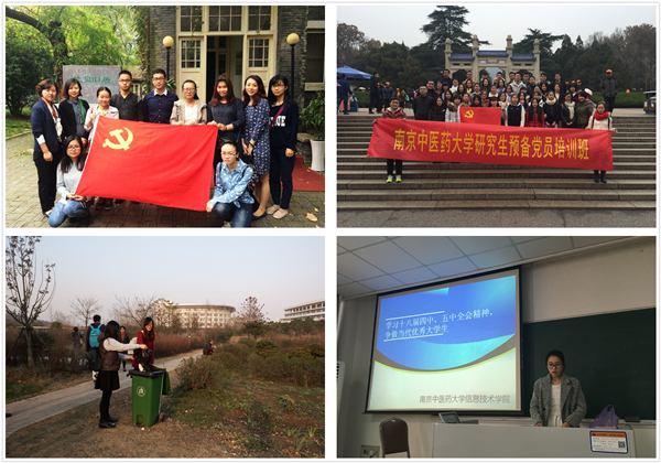 预备党员培训是学校党员教育培训体系中的重要一环,是促进广大党员坚定理想信念,加强党性修养,提高党员素质和能力的重要平台。本期培训班自11月29日开班至结业,历经三个周末,共263名学员参加培训,其中实体班学员220人(含教工学员6人),网络班学员43人。本期培训以“讲理想跟党走,明责任勇担当”为主题,共26学时,安排专题讲座5次,录像教学1次,自学讨论、大会交流4次。在培训期间,举行了简朴庄严的入党宣誓。国家公祭日当天,全体学员为30万遇难同胞默哀。培训期间,各学习小组精心组织安排小组讨论,各学院党委还策划了丰富多彩的实践教学活动,带领学员参观国际抗日航空烈士纪念馆、中国金陵廉政文化教育馆、拉贝故居等爱国主义教育基地;并组织学员开展传递党的声音、爱护校园等各类主题党日活动,如药学院举办了“行为生于毫末,文明始于行动”实践教学活动,第一临床医学院举办了“树理想丰碑颂青春之歌”主题党日活动,外国语学院举办了“铭记历史缅怀先烈,不忘国耻奋勇向前”纪念抗战胜利70周年主题党日系列活动等。
