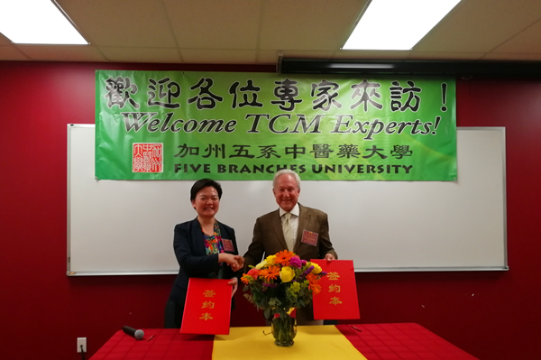 曾莉副校长代表学校与加州五系中医药大学签署两校硕博士研究生培养合作协议。为期四天的美国加州五系中医药大学中医博士班(英文班)经方应用系列讲座也于8月11日正式开班,我校国际经方学院院长黄煌教授主讲“柴胡类方”“桂枝类方”“半夏类方”。加州五系中医药大学中医博士班(中文班)的经方应用系列讲座也将于8月18日-21日开班,我校国际经方学院院长黄煌教授将主讲“大黄类方”“黄连类方”“葛根类方”。