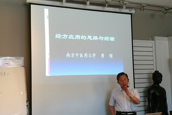 随后,为期三天的经方培训班也在约翰·珍妮学院顺利举办。黄煌教授主讲“柴胡类方”“桂枝类方”“半夏类方”,并作了《经方应用的思路与经验》的专题报告。来自加拿大多伦多、蒙特利尔、温哥华等地约40多人参加了此次培训班。曾莉副校长一行还出席了南京中医药大学与约翰·珍妮中医学院联合培养的首届硕博士研究生入学典礼,并代表我校向本届入学的硕博士研究生表示热烈的祝贺,同时向同学们简要介绍了南中医的办学历史和发展现状,勉励同学们秉承南中医“学贯中西,至精至诚”的教育理念,继承和发展好中医,为中医药事业在世界传承与弘扬做出自己的努力。开学典礼结束之后,曾莉副校长为同学们作了精彩的专题报告《中医体质辨证与食疗养生》。
