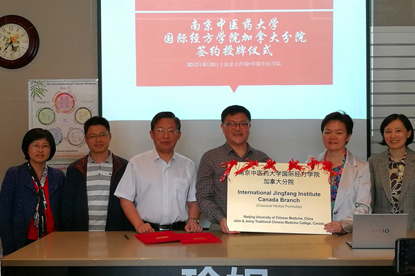 近日,南京中医药大学国际经方学院加拿大分院和美国加州分院,先后在加拿大约翰·珍妮中医学院和美国加州五系中医药大学成立。我校曾莉副校长、国际经方学院黄煌院长、国际交流与合作处郑晓红处长、研究生院毛敏副院长、加拿大约翰·珍妮中医学院刘金洪院长以及美国加州五系中医药大学Ron Zaidman校长和赵振平副校长分别出席授牌仪式。