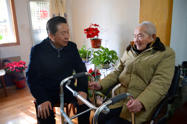 慰问期间,校领导来到老领导、老党员、老同志、老专家的家中或病房中,与他们亲切交谈,仔细询问他们的身体状况、家庭生活情况等,还简要向他们汇报我校2017年取得的进步,如学校入选“双一流”学科建设高校和江苏高水平大学建设高校,《中国大学评价》综合排名蝉联全国中医药院校第一和首次入围U.S. News世界大学排行榜等。学校感谢老同志们深情的无私奉献和辛劳的艰苦创业,学校时刻牢记他们的历史功绩和巨大贡献,希望老同志们在保重身体的同时,一如既往地关心支持学校各项事业的发展,多提宝贵意见。陈涤平书记、胡刚校长还要求相关部门关心照顾好老同志们的生活起居,为他们老有所养、老有所乐、老有所为创造良好的条件。