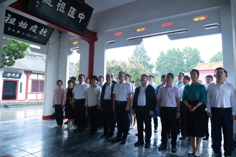 在河南中医药大学党委副书记朱建光、南阳市政府副秘书长李菡等陪同下,我校党委理论学习中心组成员先后来到南阳医圣文化园、药益宝艾草制品有限公司以及国家骨伤区域医疗中心,实地学习回顾习近平总书记关于发展中医药的重要讲话精神,考察了解当地中医药发展现状,进一步提高作为新时代高等中医药教育工作者奋力推动中医药振兴发展的政治自觉和文化自信。