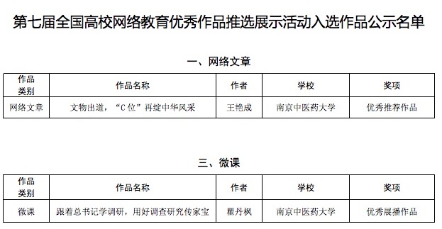 近日,由教育部思想政治工作司、中央网信办网络社会工作局联合主办的第七届全国大学生网络文化节和全国高校网络教育优秀作品推选展示活动(简称“一节一推选”活动)公示获奖结果。我校护理学院王艳成老师的网络文章《文物出道,“C位”再绽中华风采》获评“优秀推荐作品”;学生工作处瞿丹枫老师的微课《跟着总书记学调研,用好调查研究传家宝》获评“优秀展播作品”。江苏高校在网络教育优秀作品推选展示活动中获奖总数为52项,我校在全省高校位列第五。