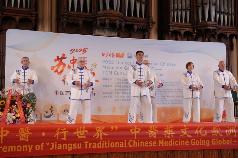 当地时间10月3日上午,由新华报业传媒集团、南京中医药大学联合主办,南京中医药大学中国—英国中医药中心(曼彻斯特)协办的2025“苏中医·行世界”中医药文化欧洲行启动仪式在英国曼彻斯特罗奇代尔市政大厅举行。中英双方各界嘉宾以及曼彻斯特市民数百人参加活动。