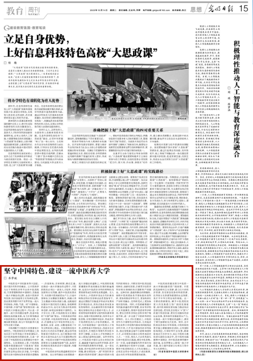 在我校71周年华诞之际,校党委书记乔学斌同志在《光明日报》教育周刊思想版发表署名文章《坚守中国特色,建设一流中医药大学》,系统阐释了新时代一流中医药大学建设的独特优势、使命担当与根本路径。