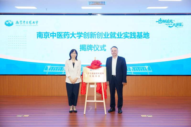 孙秀兰与王勇共同为“南京中医药大学创新创业就业实践基地”揭牌,并聘请王勇为南京中医药大学创新创业导师。