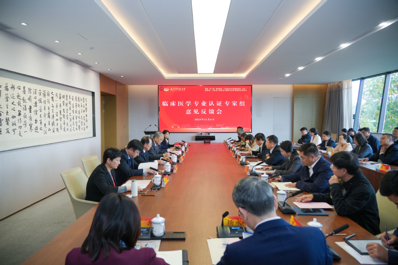 程海波代表学校对专家组的辛勤付出和悉心指导表示崇高敬意和衷心感谢。他指出,学校将全面吸纳专家组意见和建议,从三个方面全力推进认证后续工作。一是坚持问题导向,全面落实整改。严格对照认证标准,建立“三张清单”,实行对账销号,完善人才培养质量持续改进机制,深入践行“学生中心、成果导向、持续改进”理念,实现“以评促建、以评促改、以评促强”的目标。二是深化体制改革,推进医教协同。以体制机制创新为抓手,深化与附属南京医院的临床教学联合体建设,强化临床教学同质化管理,加大教学资源投入,健全“院校—医院—行业—毕业生”四方联动的质量评价体系,持续提升教学质量。三是突出办学特色,打造专业品牌。坚持“支撑、交叉、特色”三位一体的专业定位,将大健康理念贯穿人才培养全过程,发挥中医药学科优势,推进跨学科融合,着力培养兼具现代医学素养和中医药智慧的复合型医学人才。