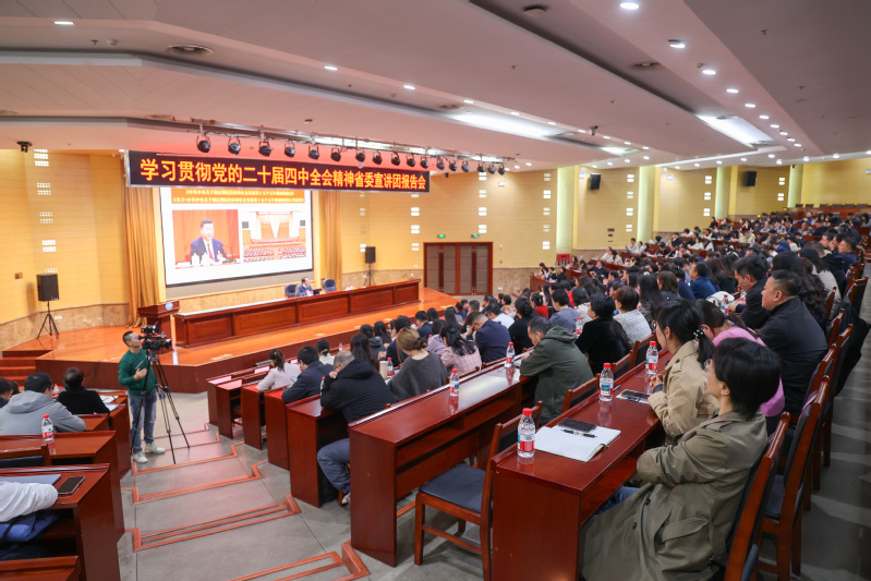 11月12日下午,根据省委统一安排,学习贯彻党的二十届四中全会精神省委宣讲团报告会在我校举行。省委宣讲团成员、苏州大学马克思主义学院院长孙建华教授作宣讲报告。报告会由校党委副书记程革主持。