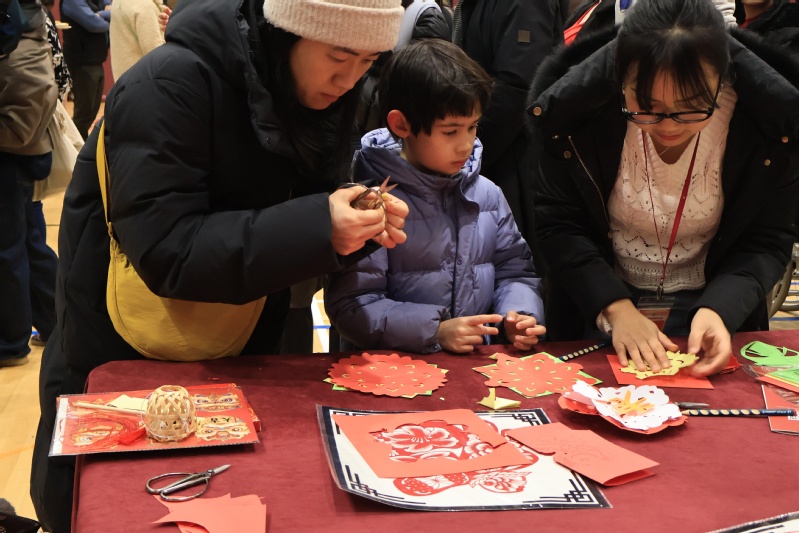 本次庆祝活动设置了丰富多彩的春节文化体验项目。书法、剪纸、花灯制作等传统民俗体验吸引众多参与者驻足体验。来宾们在书法展台挥毫书写“福”“春”等吉祥字样,在剪纸展台制作富有年味的立体剪纸作品,在花灯制作区亲手完成象征团圆与幸福的传统花灯。此外,活动还特别设置跳竹竿、棉花糖制作等互动项目,让当地民众在参与中感受中国传统节日的欢乐氛围。