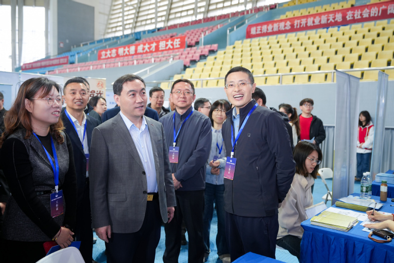 各学院党政领导、专业负责人、学业导师、辅导员下沉双选会一线,现场开展“访企拓岗”和精准推介,助力毕业生高质量充分就业。