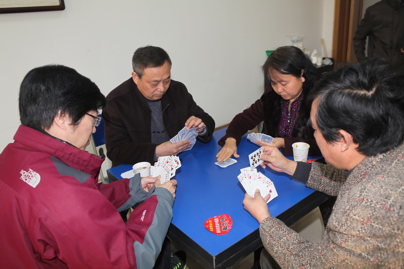 马家忠副书记(左一)和翟天灵副校长(右二)代表学校参加掼蛋比赛