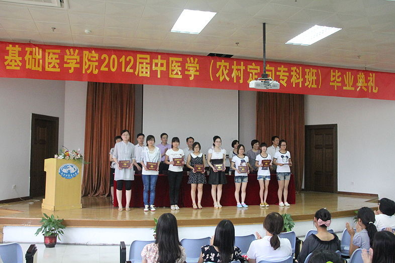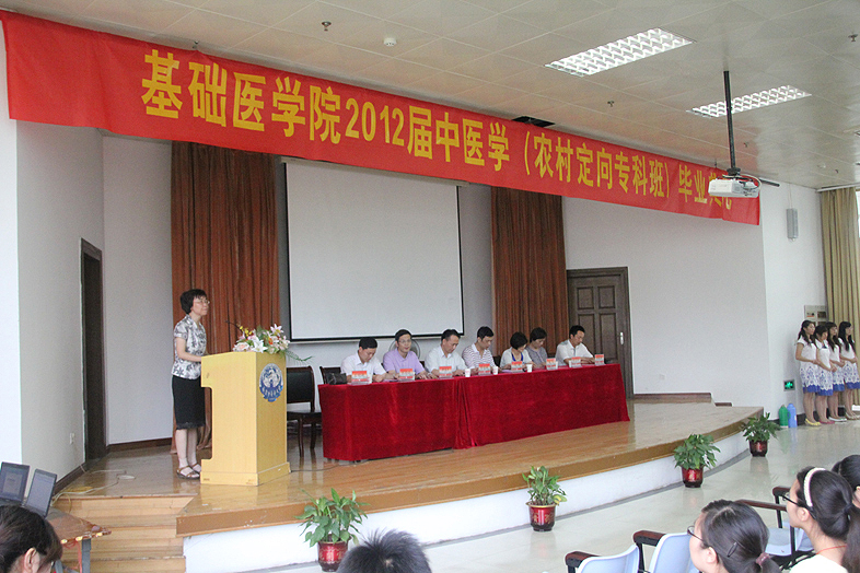 又一年栀子花开,又一个离别之季。6月19日上午10点,南京中医药大学基础医学院2012届中医学(农村订单定向医学生大专班)毕业典礼在大活107报告厅隆重举行。学校黄桂成副校长、教务处朱亮副处长、学生处张同远副处长,基础医学院全体院领导、学工办老师、毕业班班主任及133名2012届专科毕业生参加了毕业典礼。毕业典礼由基础医学院王明艳副院长主持。