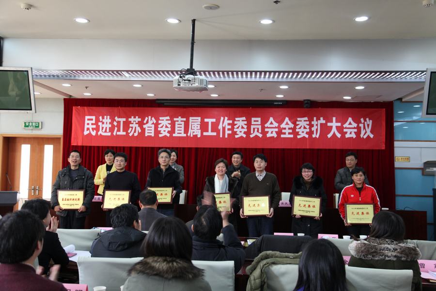 2014115下午,民进江苏省直属工作委员会全委扩大会议在南京航空航天大学举行,会议表彰了2013年度先进基层组织和优秀会员,校民进支部分别以排名第一、第二的成绩喜获宣传思想工作先进集体和先进基层组织的光荣称号,毛春芹和严国俊两位老师分别获得先进个人和宣传思想工作先进个人表彰。