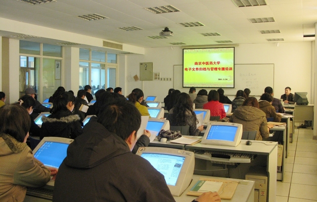为了加强学校电子文件的归档和管理,提高专兼职档案人员的业务水平,2011年3月24日,学校举办了南京中医药大学电子文件归档与管理专题培训。各部门、各学院的专兼职档案员及学院分管学生工作档案的老师共50余人参加了培训,会议由校长办公室程海波主任主持。
