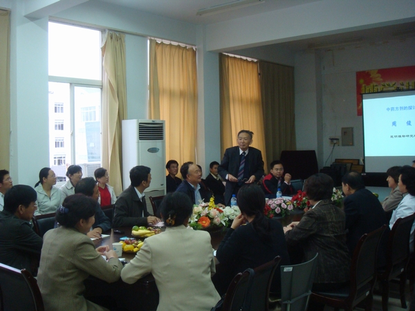 20101013日,中国科学院周俊院士在基础医学院会议室进行了题为《中药方剂的探讨》学术报告。来自昆明植物研究所已78岁高龄的周俊院士用诙谐的方式讲述了个人从事中药科研事业的成长奋斗史;以科学严谨的态度而又不乏幽默风趣的语言从方剂历史、组方理论、中药复方的多靶作用、天麻、太子参、仙茅等中药的化学成分研究等四方面与师生分享了自己多年来研究中药、方剂的心得体会;并就如何写出高水平、高影响因子的SCI文章向师生们提出了宝贵的意见与建议,使参加报告会的师生受益匪浅。