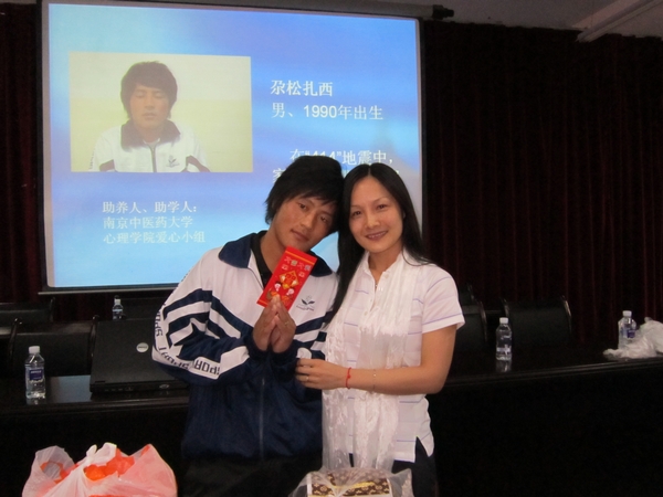 该活动的正式启动仪式于2010年7月26日在玉树孤儿安置点之一的青海省共和县海南藏族自治州职业学校举行,我校心理学院捐助的是玉树职业技术学校2009级藏医(1)班的一名孤儿尕松扎西。在“414”地震中,尕松扎西的家人全部遇难,房屋全部倒塌,财产大部分损失。学院对尕松扎西的捐助时间为两年,2010年7月-2012年6月,以帮助他完成现有的学业;在捐助的同时,学院还会发挥专业优势,对这名孤儿做好心理疏导工作,帮助他恢复生活和学习的信心,重建心灵家园。