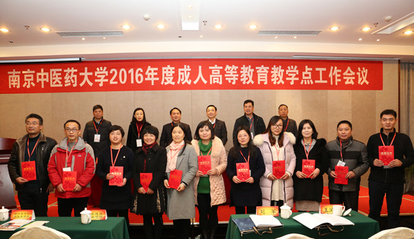 参会领导为“南京中医药大学2016年度成人高等教育先进工作者”获得者颁发证书