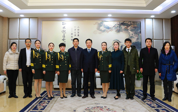 学校党委书记陈涤平教授在报告会前到现场看望宣讲团成员,并合影留念。