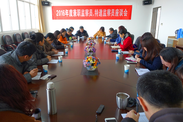 为贯彻落实十八届六中全会精神,充分发挥兼职监察员、特邀监察员在全面从严治党中的监督作用,进一步推进学校党风廉政建设和反腐败工作,我校于12月29日召开2016年度兼职监察员、特邀监察员座谈会。会议由纪委办公室副主任、监察处副处长孙文明同志主持。全体兼职监察员、特邀监察员和纪委办公室、监察处同志参加了会议。