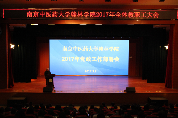 3月2日下午,翰林学院在行政楼一楼小剧场召开2017年党政工作部署会议,全体院领导、全体中层干部、全体教职工参加。翰林学院党委陈小进副书记主持会议。