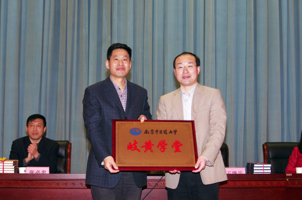 随后,王长青副书记与王继兵校长为南京中医药大学——如东高级中学岐黄学堂授牌,并向中学赠送中医药科普图书。