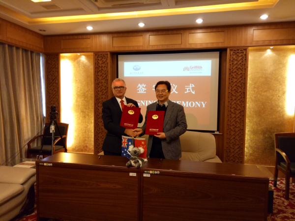 谭仁祥副校长与Ian O’Connor校长(左)续签合作备忘录