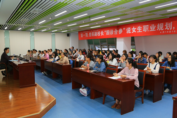 4月19日,图书馆校园读书节尚书讲坛“校长来了”栏目迎来本学期第一期讲座——曾莉副校长主讲的《“四诊合参”论女生职业规划》。